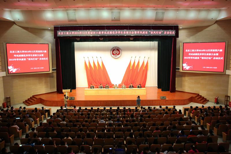 为加强学风建设,营造良好的英语学习气氛,3月25日,学校在良乡校区召开2014年12月英语四六级表彰大会暨学风建设“春风行动”启动仪式。校领导孙宝国、卢思锋、李朝鲜出席会议。大会由教务处处长魏中龙主持,各学院(部)教学副院长及副书记、辅导员、班主任,2013、2014级学生代表,31名获奖学生,教务处、学生处工作人员等参加了会议。