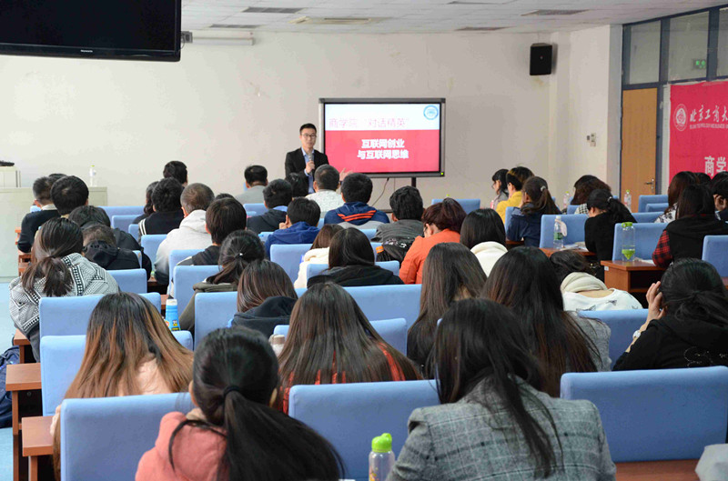 4月8日,商学院本学期第一场“对话精英”讲座在良乡校区正式开讲。京东集团云事业部高级总监徐旭为同学带来“大数据时代对商科人才的需求”主题讲座,百余名学生参加了此次讲座。举办对话精英讲座为商学院学风建设的一项举措,旨在结合学术讲座提升学习氛围。本学期,商学院将通过“五结合”进一步强化学风建设,帮助同学明确学习目标,转变学习态度,在全院范围内营造奋发向上、开拓进取的学习氛围和学习风气。