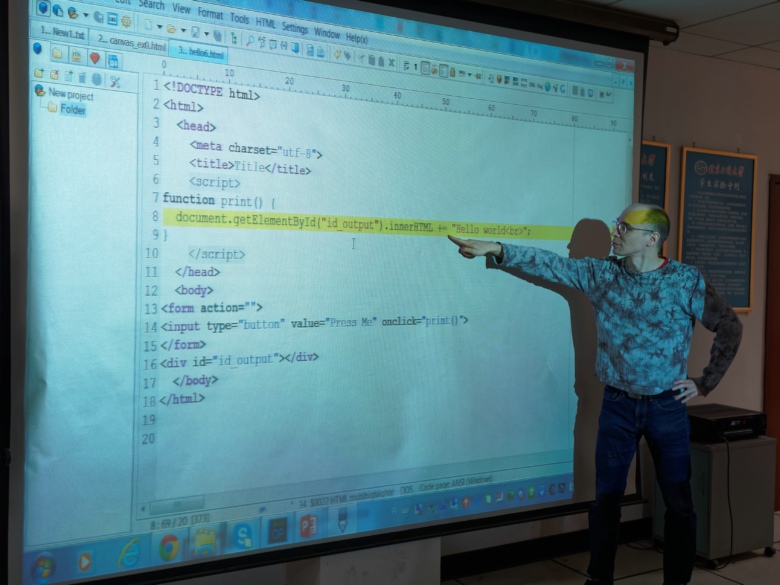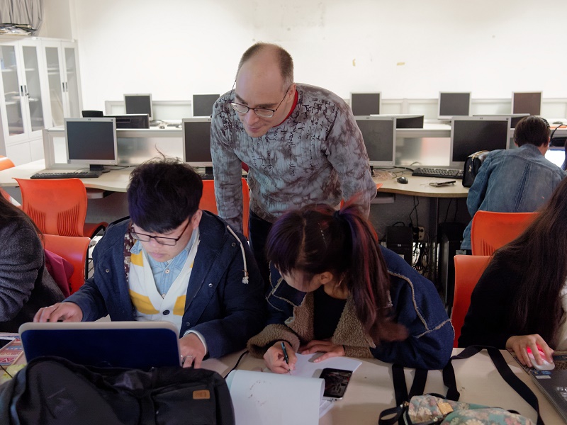 佩特里·奎迪南先生此次担任客座教学的课程为《交互与体验》,教学内容主要包括:HTML5语言概述;网络程序语言的简要发展历程;HTML、CSS、Java Script的基本写法与常用工具;网络编程语言入门学习资源分享等。针对产品设计类学生的学科背景特点,佩特里先生还穿插讲解了编程与设计的关系及发展前景;智能产品、移动互联网产品的发展前景;计算机编程在设计、游戏领域的应用等内容。讲授过程中,他通过多种多样的教学方法,激发学生兴趣,整个授课过程学生参与度极高。作为设计类学生,同学们为自己编写完成的第一个HTML5程序感到兴奋不已,同时对网络技术与艺术的关系有了更为深刻的认识。