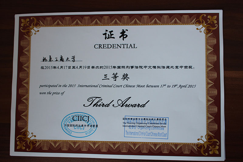 4月17日至19日,我校法学院学生在京参加国际刑事法院中文模拟法庭比赛获得2015年国际刑事法院中文赛的三等奖。