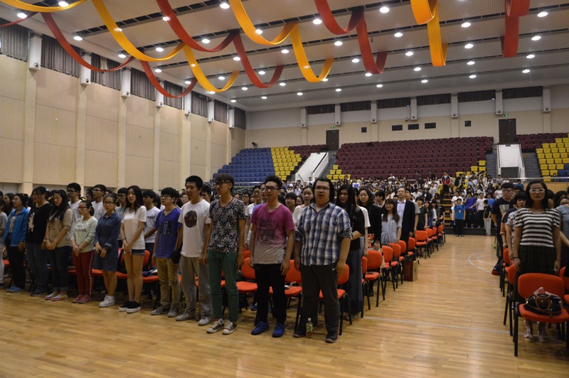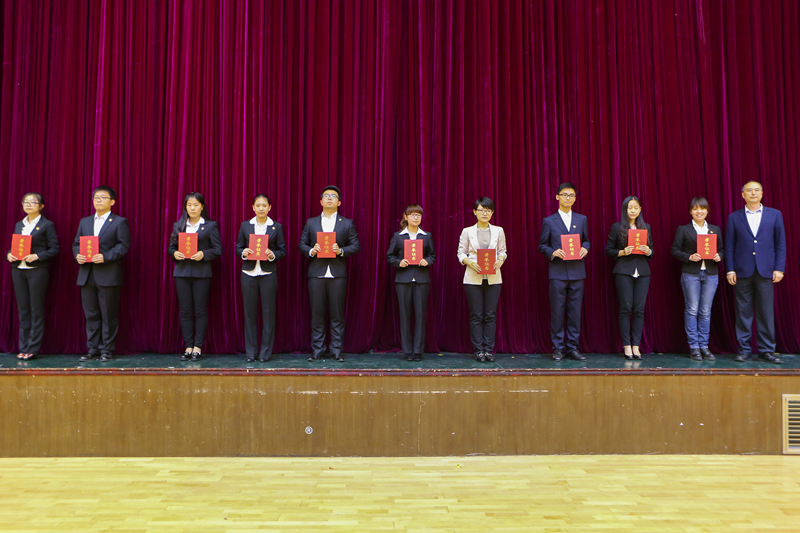 伴随着激昂的国歌声,广大师生全体起立,怀着庄重的爱国主义情怀参加本次五四表彰大会。2014-2015学年间,在校党委的领导下,我校共青团继承优良传统作风,坚定共产主义信念,勤奋学习,勇于实践,锐意进取,争创一流,涌现出一大批先进集体和个人。经过各级共青团组织推荐、评选,共评选出43个“先锋杯”优秀团支部、296名“先锋杯”优秀团干部、1065名“先锋杯”优秀共青团员和21名“五四青年先锋”。 团委书记吕良宣读了表彰决定,党委副书记卢思锋为获奖集体和个人颁奖。