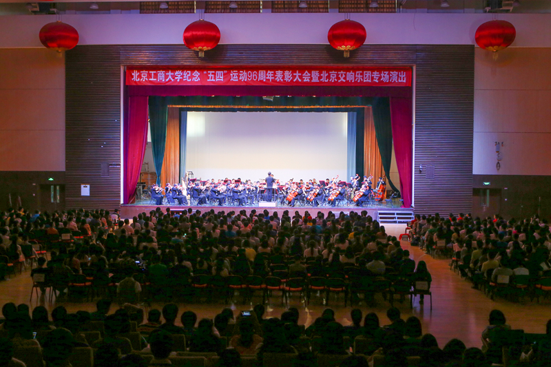 为进一步引导和激励我校青年学生继承和发扬“五四”精神,培养新时代大学生的爱国和进步思想,表彰先进集体和个人;提高学校师生的艺术素养,陶冶情操,培养学生对高雅艺术的兴趣,我校于4月29日在良乡校区召开“纪念五四运动”96周年表彰大会暨北京交响乐团专场演出。党委卢思锋副书记出席活动,体育与艺术教学部、团委和各学院相关领导和师生代表参加了此次活动。