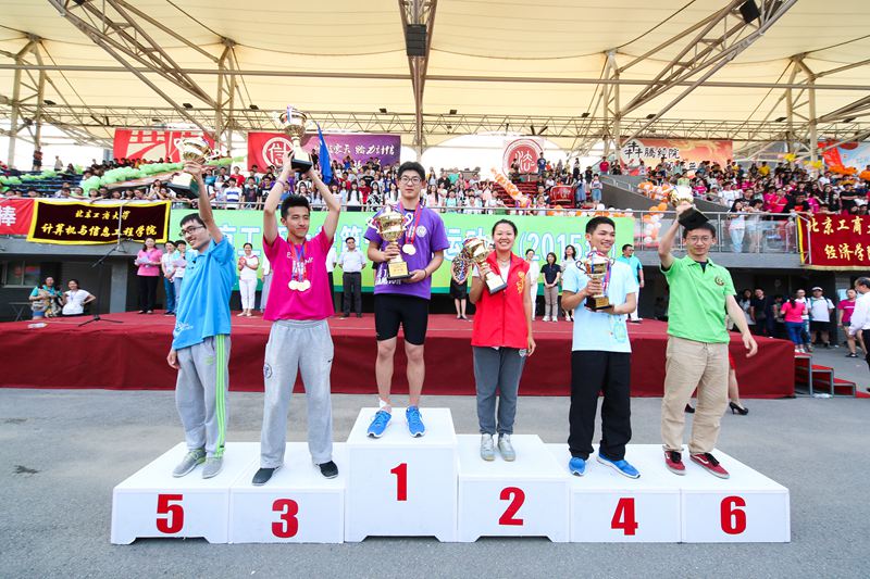 最终材机学院、计信学院和商学院获得组织奖;理学院、法学院、艺传学院获得宣传奖;食品学院、经济学院、外国语学院获得创新奖;材机学院、计信学院、商学院获得精神文明奖。此外,计信学院获得男子团体、女子团体、团体总分和非竞技项目总分四项第一名。