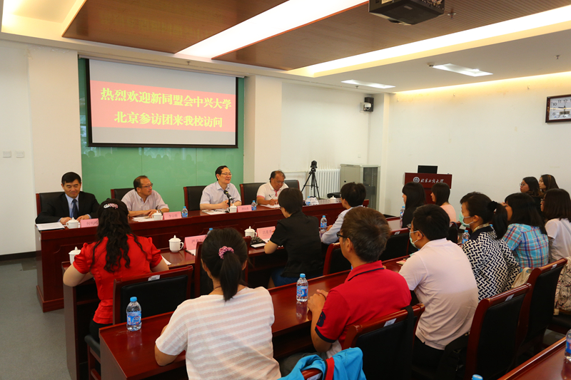 6月16日,新同盟会中兴大学北京参访团一行40人到访我校,国务院台湾事务办公室严童阳女士陪同参访。学校党委书记谭向勇在阜成路校区会见了参访团一行。