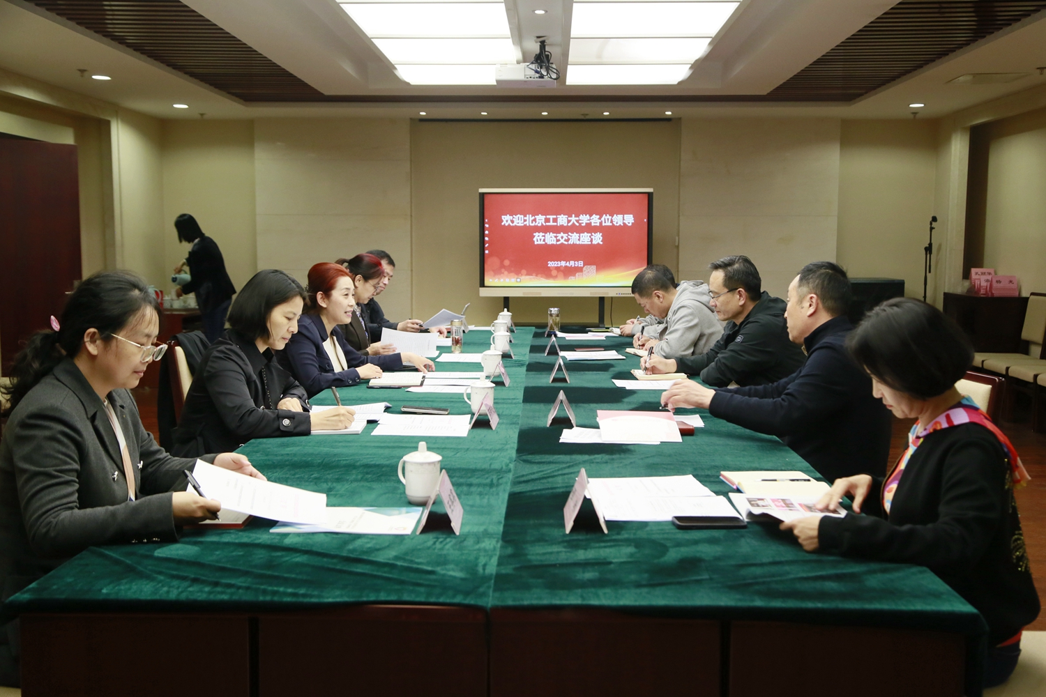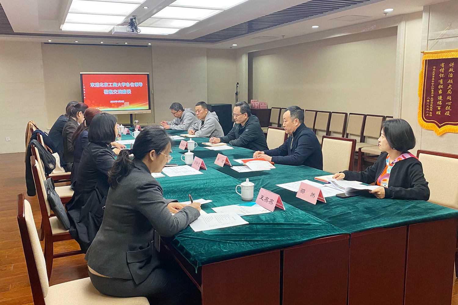 温庆云作总结讲话,对北京工商大学一行到访北京市慈善协会表示欢迎,并明确了双方未来可以进一步探索合作的事项和路径:一是继续原有资助项目,并进一步挖掘和拓展双方新的合作契合点;二是借助首都公益慈善联合会平台,增强双方间的协调配合和调度;三是利用“99公益日”等重要活动契机,联合开展慈善品牌项目;四是合作共建志愿者队伍,学校在重大项目、重点活动中给予志愿支持;五是进一步探索学校和协会合作新模式,考虑合作开展义田项目,共同助力乡村振兴;六是积极为学校与会员企业牵线搭桥、推动合作,实现共赢。