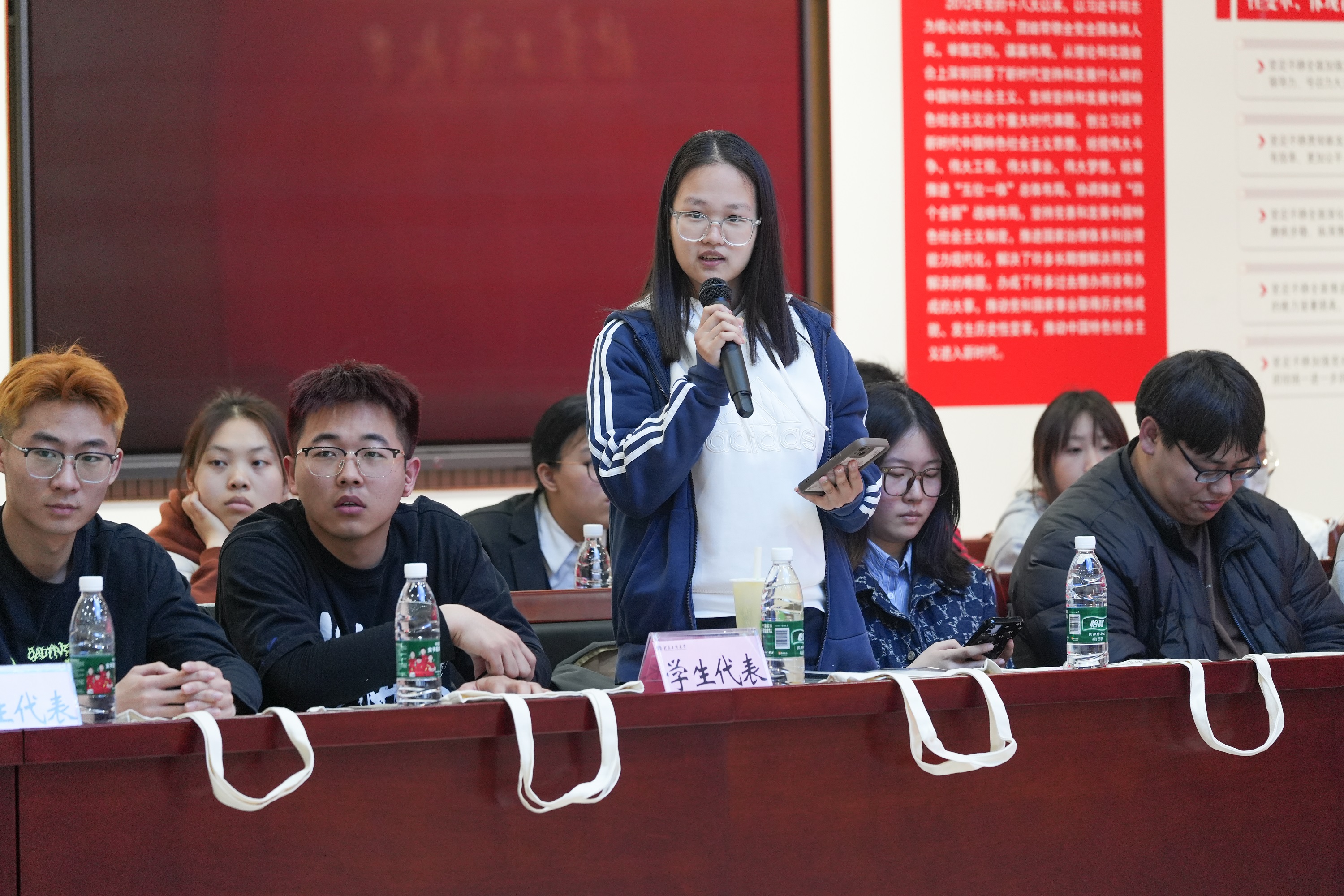 在“一心一意”学生座谈会现场交流环节,各学生代表围绕课程设置、校园环境、安全出行、信息网络、餐宿条件、“一站式”社区建设等提出意见和建议。各单位负责人认真倾听,并分别给予解答。会后,党委学生工作部将建立需求清单,与各单位对标对表抓好落实,第一时间反馈答复。