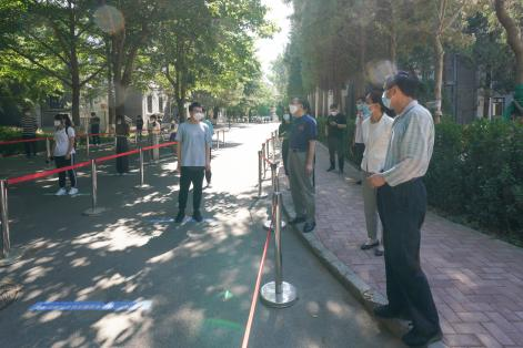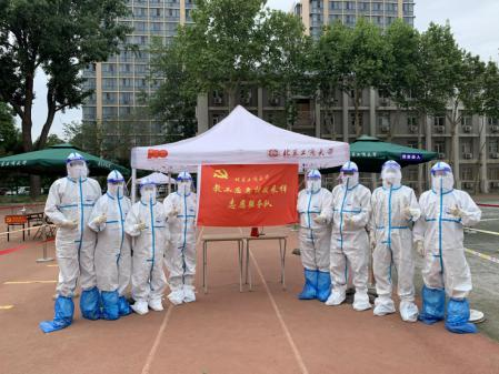 4月30日凌晨,学校阜成路校区被列为临时管控区域,志愿服务队第一时间招募志愿者组成突击队,进入学校圆满完成核酸检测任务。解除临时管控后,学校进入常态化的每日核酸检测,志愿服务队继续按照要求,开展核酸信息采集工作。核酸检测工作启动以来,学校党委书记黄先开和党委副书记、校长孙宝国等校领导多次到工作一线慰问党员教工志愿者。他们勉励大家注意劳逸结合,做好自身防护,一名党员就是一面旗帜,希望志愿者们推动“党员红”和“抗疫白”相得益彰、熠熠生辉,携手筑牢学校抗疫“红色长城”,让党旗在抗疫一线高高飘扬。