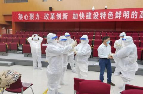 4月29日上午,学校以线下线上相结合的方式,举行党员教工应急核酸采样志愿服务队动员培训会。学校党委副书记王伟出席会议,并为志愿服务队授旗。他肯定了党员教工“抗疫有我、冲锋在前”的精神品格,强调要坚持党建引领,贯彻落实上级各项工作部署,认真参与培训、掌握专业要求,在组织召唤时,第一时间进入战斗状态,协力织密校园疫情防控网,用硬核能力打赢抗疫硬仗。会上,在校医院医护工作人员指导下,对志愿者开展了专业培训,使大家能够较快地掌握防护服穿脱、信息录入、秩序维护等工作内容。