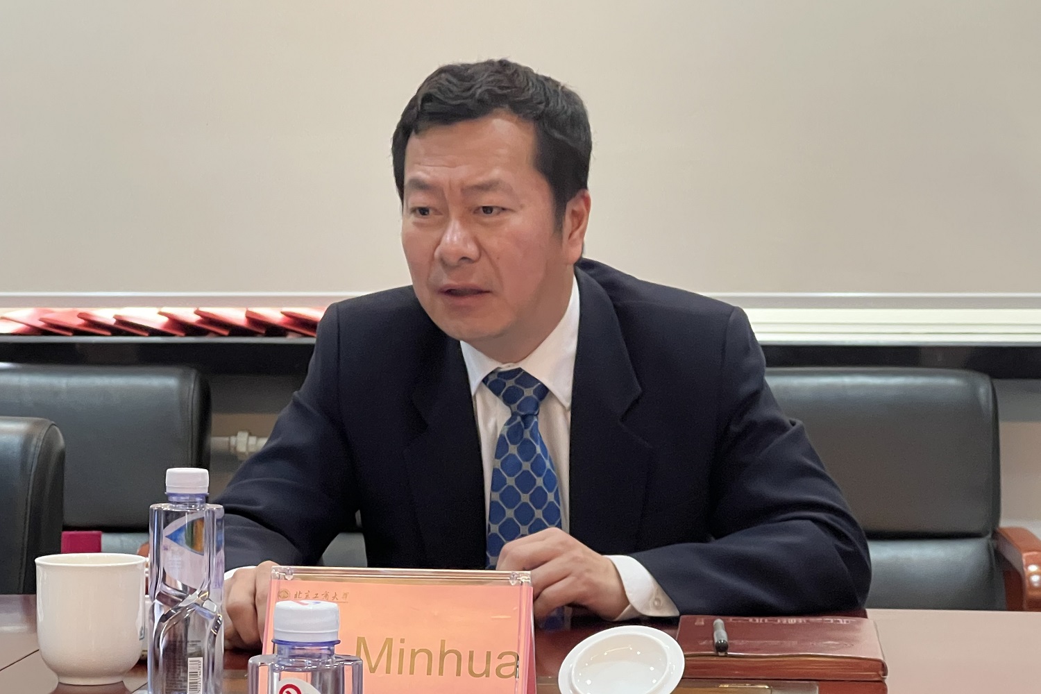 随后,国际交流与合作处处长兼国际教育学院院长贺冬萌介绍了学校国际化的相关情况;国内交流与合作处处长张晓磊介绍了学校两校区的具体定位情况及阜成路校区服务国际交流交往的具体工作。双方还就中外硕博层次联合培养、师资交流以及科研合作等方面的内容进行了深入交流与讨论。