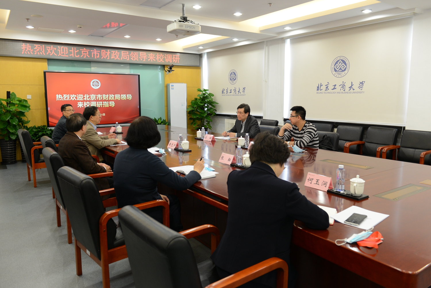 会上,与会人员观看了学校宣传片,全方位了解了学校的基本情况、办学思路和发展现状。党委副书记、校长孙宝国对市财政局一直以来对学校建设发展的大力支持表示感谢,就学校近年来改革发展取得的新成效新亮点做了简要介绍,希望在学校加快推进高水平研究型大学建设、深入落实北京市“疏解整治促提升”专项行动任务的过程中,能够更多地得到北京市财政局的指导和支持。