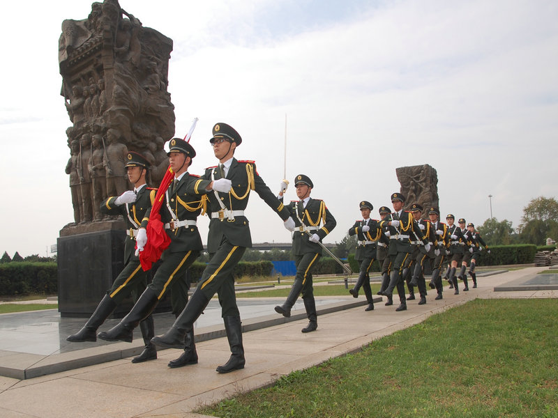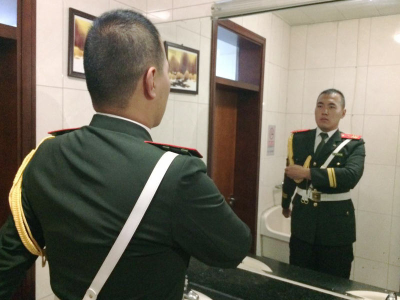 此次活动恰逢抗日战争暨世界反法西斯战争胜利70周年以及建国66周年,全国各高校、尤其京内高校都非常重视,并进行了充分的准备。我校国旗护卫队刚刚在9月北京高校国旗仪仗比赛中荣获二等奖的历史最好成绩后,队员们以更加饱满的热情投入赛前准备。在不耽误正常上课的前提下,护卫队充分利用每天早晨6:00~7:30、晚上9:00~10:30和周末的时间训练,反复强化每一个流程,细抠每一个动作。有的队员除了正常训练时间外还会对着镜子加练,直到动作规范为止。经过连续集训,大部分队员脚上磨出了血泡,但为了全队的荣誉,没有一名队员缺席训练。正像护卫队队长所说的,在国旗护卫队中,坚持就是一种幸福!
