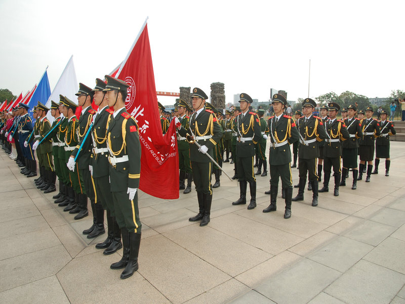 9月30日,由团中央学校部和全国学联秘书处共同主办的“青春旗帜——向祖国致敬”在卢沟桥抗日战争雕塑园举行,来自全国26所高校的400多名大学生升旗手参加此次活动。我校国旗护卫队发挥出色,超过北京化工大学、北京农学院等传统强队,以总分第三名的成绩荣获一等奖,再次刷新了我校在该项活动中获得的最好成绩。