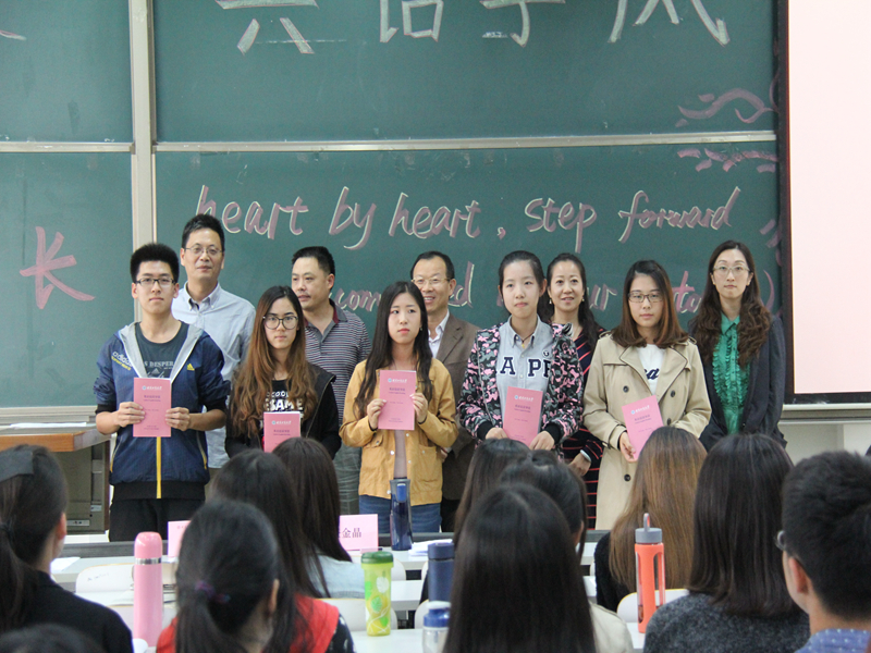 晨读一直是外国语学院坚持的学习传统,多年来不断创新,本学期学院为同学们精心设计《外国语学院晨读导读》作为晨读教材,并在恳谈会上由学院领导班子为学生们授书。该教材汇集数十篇英美精品文章,同学们在导师和晨读教师的指导下练习语音语调。