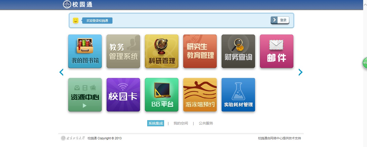 “校园通”是我校数字化校园的展示平台,在该平台上集成了校内各个业务应用系统,让广大师生员工只要拥有一个账号,就能访问到权限范围内的所有信息资源,并可以定制自己所需的信息服务。