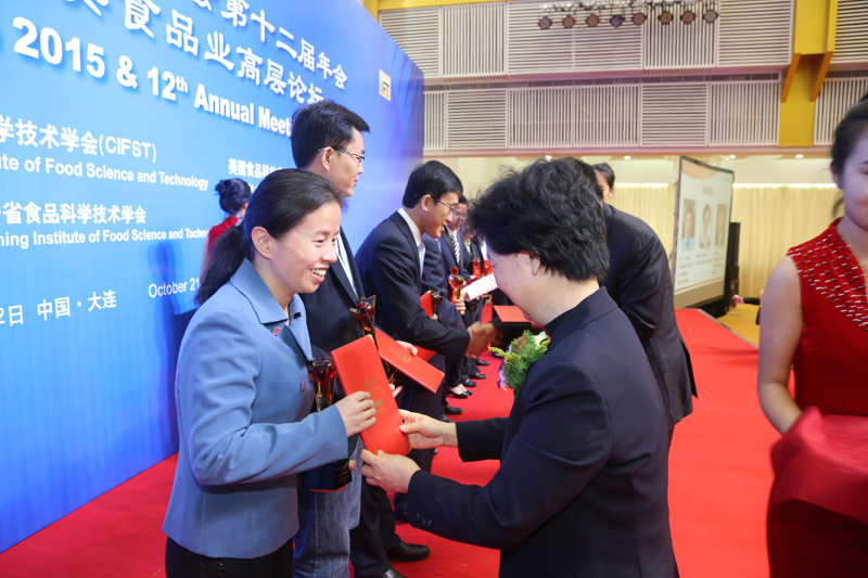 大会颁奖仪式上,我校食品学院王静教授荣获2015年度中国食品科学技术学会科技创新奖-杰出青年奖;食品学院王成涛教授荣获2015年度中国食品科学技术学会科技创新奖-优秀论文一等奖;食品学院曹雁平教授指导的张泽宇、牛悦等学生荣获2015年度李锦记杯学生创新大赛三等奖。