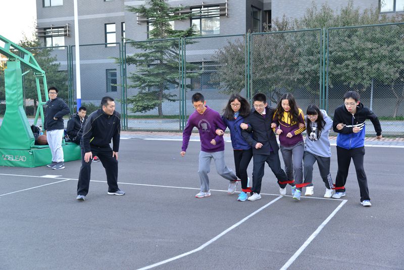 食品学院的学生们在院旗前进行着跳长绳活动,辅导员夏宾也是参与活动的一员。“早上晨练时,他和我们一起跳大绳;在进行二人三足比赛时为我们加油。夏老师用实际行动为我们展现运动的魅力,我们也享受其中!”食品152的肖佩佩同学说道。由于食品学院在良乡校区学习时间只有一个学年,所以晨读晨练活动没有高年级学生骨干帮忙组织,这就要求夏老师一个人担起所有的组织工作。为了让“五早”活动更加有序和充实,全部晨读晨练安排都由大一学生们完成。