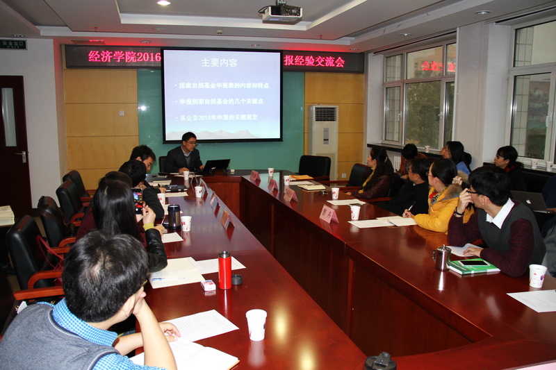 杨有红处长介绍了国家“两科”基金申报政策、申报成功率和申报注意事项。他对经济学院近几年国家“两科”基金申报和批复情况充分认可,希望经济学院通过开展国家“两科”基金申报经验交流会、评审会等细致的工作,实现2016年度国家“两科”基金获批数量新的突破。
