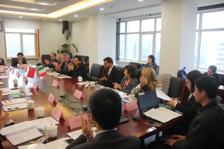 11月16日,在北京参加的中意科技创新周的意大利大学校长代表团一行13人来我校访问。李朝鲜副校长在阜成路校区亲切会见了代表团一行。