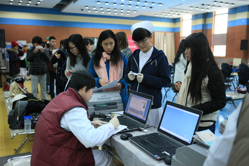 相对于漫漫献血“大军”,为此奋斗的志愿者也许并不引人注意。来自商学院的志愿者身着红马甲在队伍的前后穿梭,不仅要给每个前来排队的人发号码,发献血小册子,发需要填写的表格,还要给每个人检查证件,帮忙整理队伍,安抚未能顺利献血同学的情绪。在献血大厅的志愿者则要完成清点献血者人数,给献血者发放补给品,献血证等一系列工作。做着比同学们更多的准备而甘当幕后英雄,他们的工作态度也令人心生敬意。
