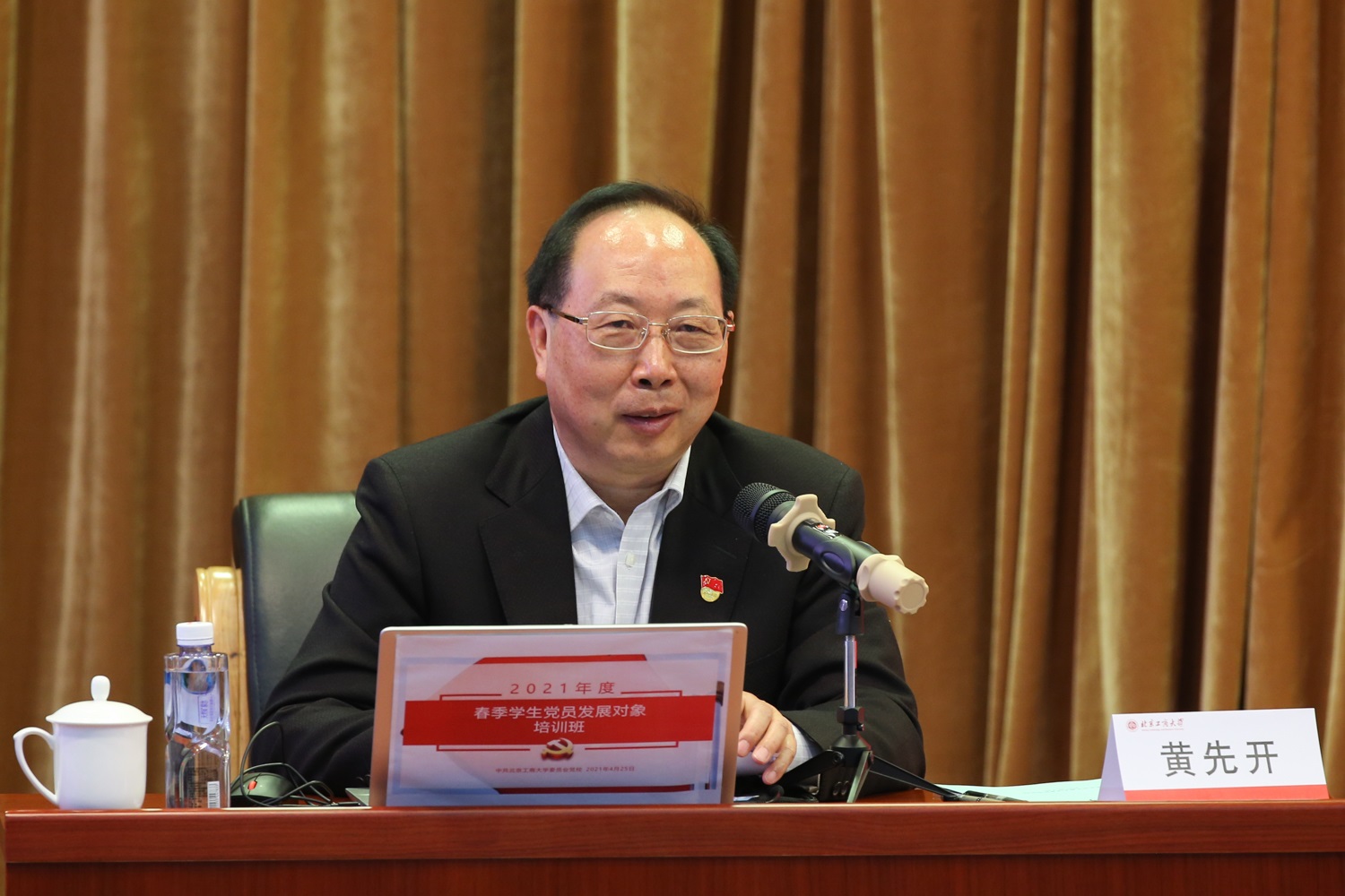 4月25日,2021年春季学生党员发展对象培训班开班仪式在良乡校区举行。学校党委书记黄先开出席仪式。学生工作部部长吕良,研究生工作部副部长郭新愿,各学院专职组织员、党校班主任助理以及306名学生党员发展对象参加仪式。仪式由党委组织部部长武晶晶主持。