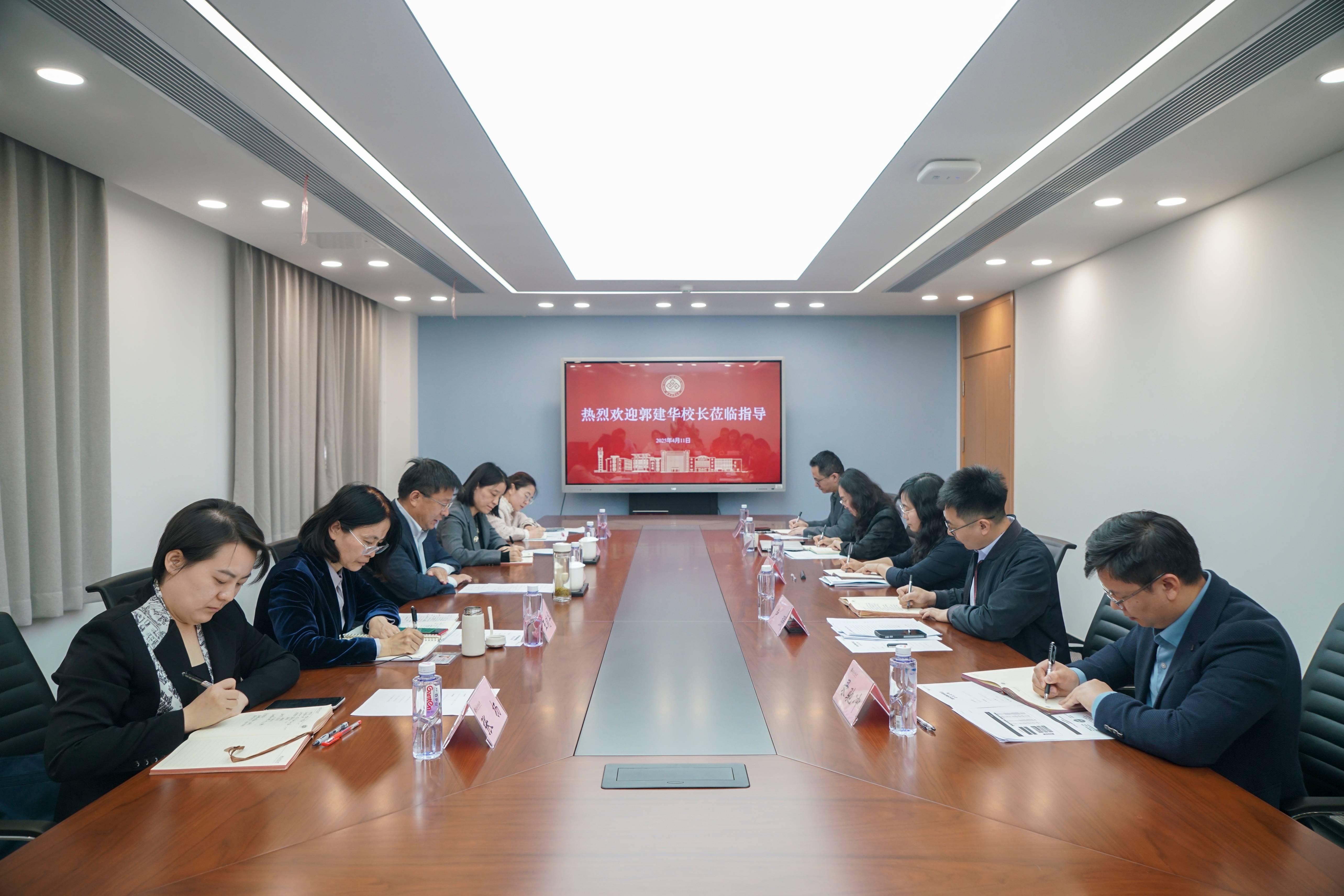 4月11日,学校党委副书记、校长郭建华到教务处调研,围绕学校“工商一体化”人才培养理念落实、创新复合型人才培养模式改革等工作进行座谈交流。副校长刘艳楠出席并主持会议。党政办公室主任王晓华、招生就业处处长石松、党政办公室副主任张扬陪同调研,教务处全体班子成员以及各科室负责人参加座谈。