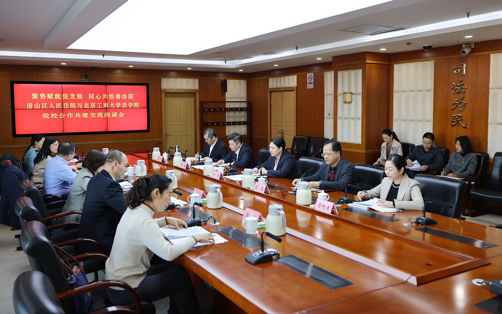 杨红对双方合作成果给予了充分肯定。她指出,房山区人民法院作为北京工商大学本科实践教学示范基地,为学校人才培养提供了“从书本到实践”的关键支撑,北京工商大学始终将房山区人民法院视为法学教育实践工作中最紧密、最富期待的合作伙伴。本次院校合作共建活动,既是学校深度了解房山区人民法院的学习实践之行,更是双方深化协同合作、拓展人才交流、推进学校访企拓岗的重要契机。期待未来双方持续深化人才共育、学术共研、资源共享、党建共促等多维度合作,携手为新时代首都高质量发展、法治人才培养提质增效和基层法治建设创新发展,贡献更多院校协同的智慧与力量。