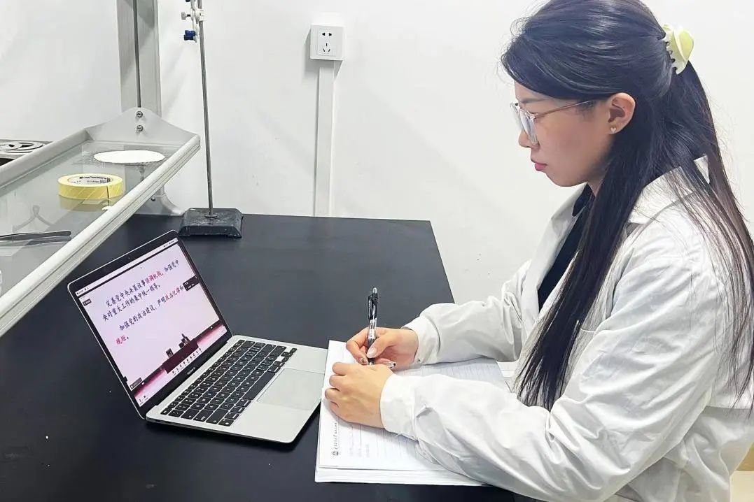正在四川省宜宾市实习的生物化工、轻工技术与工程第一党支部书记张桐溪远程聆听了培训课。她谈到,本次集中培训使我深受教育和启发,中国式现代化是高质量发展的必由之路,是一种具有深厚底蕴和广阔前景的发展模式。作为一名学生党员,重任在肩,道阻且长,我们要不断强化理论学习,专注科研,坚持科技报国的理念,承担起属于青年的责任与担当,在新时代背景下乘风破浪,扬帆起航!