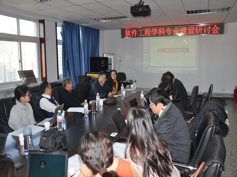 在听取汇报后,对于软件工程学科建设及专业特色,五位专家给予充分肯定。国家级教学名师、教育部高等学校计算机类专业教学指导委员会副主任、全国高校计算机教育研究会理事长、北京工业大学计算机学院蒋宗礼教授从工程教育专业认证的角度,对课外延续和学分设置提出了有益意见,并建议进一步聚合专业定位,凝练为工程应用型人才的培养。北京理工大学首任软件学院院长曹元大教授指出,在学科认证中部分专业课程不可或缺,在突出特色的基础上还要符合最新的12条认证标准。中科院软件所张阳研究员建议在金融服务软件的课程体系中,适当增加软件安全相关的课程内容。北京航空航天大学软件学院副院长宋友教授分享了北航软件学院的一些做法,并从提高学生实践能力角度给出了宝贵意见。《计算机教育》杂志奚春雁主编分享了在高校调研过程中发现的新的实践教学方法和网络时代的教学理念。