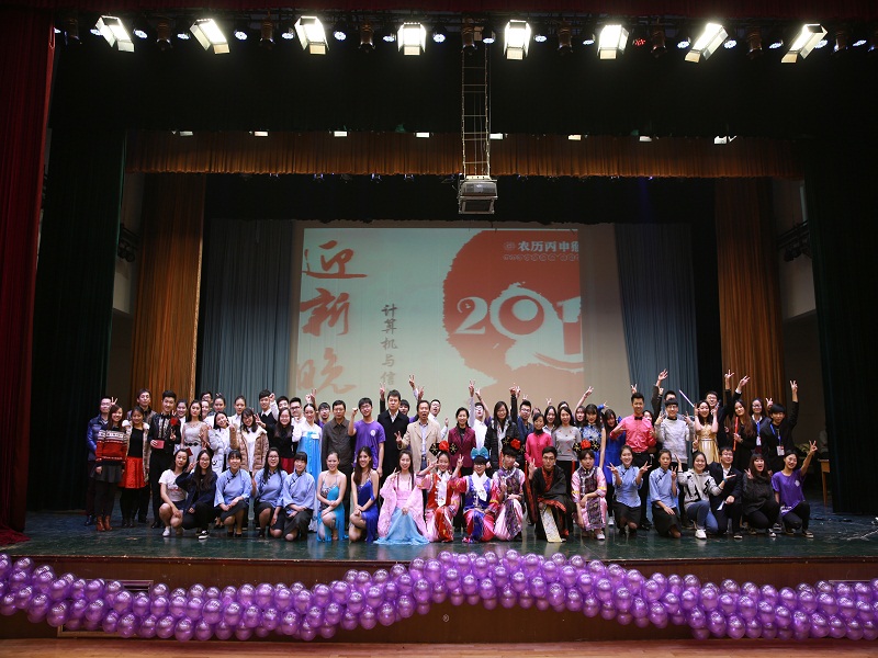 表彰大会后,计信学院还为全体师生精心准备了一场迎新晚会,希望在这个团结友爱的大家庭里,同学们尽情放飞自己的梦想。由15级新生刘钰、陈立果等人带来的诗朗诵《筑梦青春、荣耀计信》让同学们懂得了青春无价、梦想闪光,在这如歌的青春中奋斗,发出耀眼的光芒是计信莘莘学子的使命。