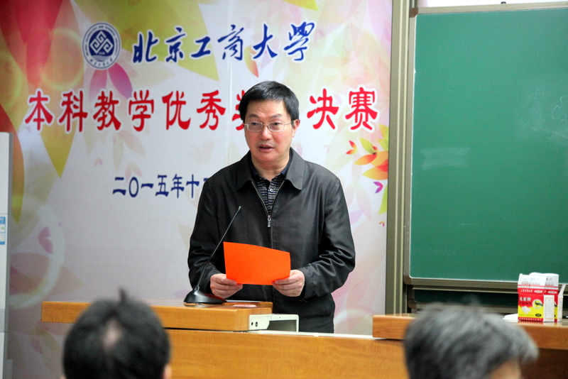 为进一步激发广大教师从事本科教学的积极性,奖励在教书育人工作中做出突出成绩,授课质量高、讲课效果好的一线任课教师,12月30日,学校在阜成路校区举行2015年本科教学优秀奖评选总决赛。校领导李朝鲜、张耘、方德英出席活动,20位教师参加角逐,31位职能部门负责人、学院(部、中心)院长(主任)、教师代表、督导专家代表组成评委组,近200名师生到场学习观摩。评选活动由教务处处长魏中龙主持。