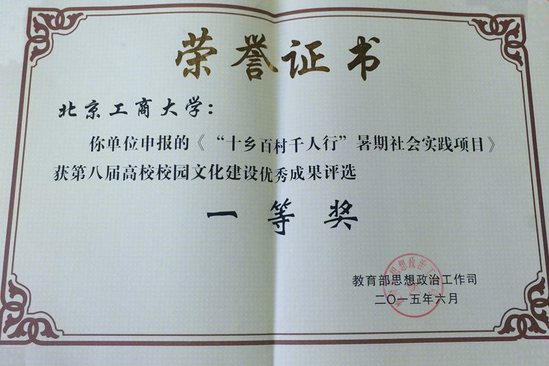 7月,学校暑期社会实践活动荣获第八届全国高校校园文化建设优秀成果一等奖。 “十乡百村千人行”活动已连续开展十一年,深入房山区24所中小学,三万余名中小学生受益,5000余名大学生参与,广大学生在实践中受教育、长才干、做贡献。