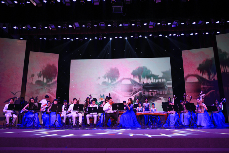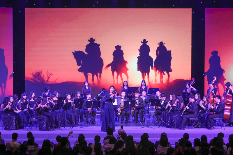 充满青春活力的学生艺术团各展风采,为大家呈现出令人回味的精彩表演。民乐团的乐手们精心排练的《青花瓷》,丝竹声悦耳动听,笛音悠扬,琴声悦耳,与充满古韵的背景相得益彰。舞蹈团表演的荣获北京市大学生艺术展演舞蹈类一等奖的作品《青春路上》,展示了他们激扬的活力和对未来的期望,而《step up》展示了学子们的蓬勃生机,表达出对梦想的追求。合唱团用优美清亮的声音演绎了《Ride the chariot》、《青春舞曲》。管乐团带来的《北京喜讯到边塞》和《美国巡逻兵》中,悠扬的提琴演奏、动听的笛声、欢快的小号交织在一起,共同衬托出一片欢乐的气氛。