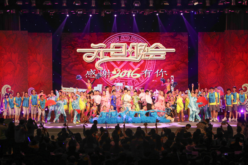 过去的一年,全校上下都取得了可喜的成绩,视频《展望》表达了师生们2016年的美好愿望以及来自祖国和世界各地的校友对母校献上的诚挚祝福。随着《节日欢歌》欢乐的歌声响起,参加演出的演员们一排排地走上舞台,学校 “感谢有你”2016年元旦晚会圆满落下帷幕。