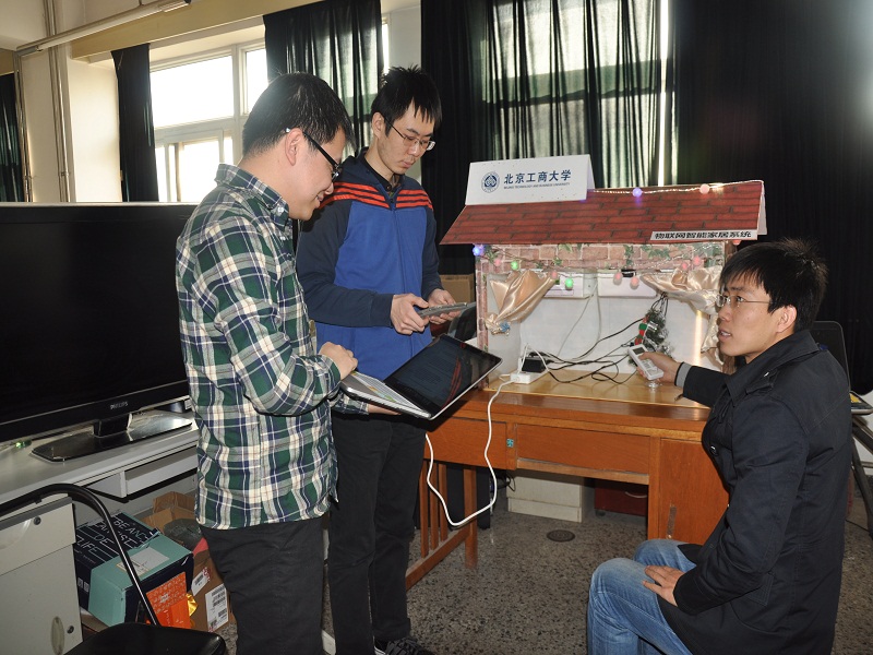 获得特等奖的@World团队(团队成员:赵宏林、郝宝智、吴文博,指导老师:廉小亲)作品是基于物联网智能家居系统,它是一款基于IOS-App和云平台的智能控制系统。该系统实现了使用App远程监控屋内空调、热水器及相关设施的功能。其中云平台提供了在线数据交换功能,使远程控制功能得以实施。用户通过手机APP来控制家居,实现对家居的远程操控,控制过程中使用WiFi或GSM的网络连接均可。