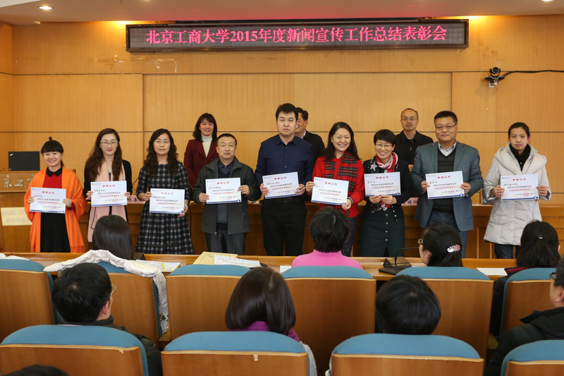 1月21日,学校在阜成路校区召开新闻宣传工作总结表彰会,总结2015年学校新闻宣传工作,表彰先进单位和个人。党委副书记张德玉出席会议并讲话。各单位新闻宣传工作负责人、通讯员等参加了会议。会议由党委宣传部副部长褚财宽主持。
