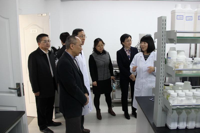 副校长张耘、纪委书记邱晓平考察了实验室的环境、仪器设备及运行情况,并重点考察了皮肤医学养生生实验室、化妆品植物原料研发小试和中试实验室、化妆品配方实验室、化妆品功效与安全评价实验室等特色实验室。