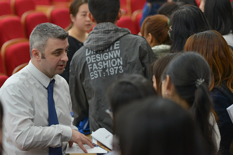 国际合作伙伴院校的代表团成员分别向参会学生介绍了派出学生项目,欧洲大学区域招聘主管金·罗赛特(Jin Roset)、荷兰方提斯国际商学院辅修专业团队领导丹尼尔·万·梅里斯(Daniel·van·Melis)、芬兰哈姆理工大学代表尤利娅(Iullia)、法国拉罗谢尔商学院中国区代表林芳、美国北伊利诺伊大学副校长助理保罗•普拉海科(Paul Prabhaker)、爱尔兰考克大学北京办公室张蓓、都柏林大学项目主管肖恩·格里森(Sean Gleeson)、巴西南大河州联邦大学博士研究生苏珊妮(Susanne)、加拿大纽布伦斯威克大学商学院副院长杜东雷、美国威斯康辛大学帕克赛德校区经管和计算学院院长德克·鲍德温(Dirk Baldwin)、韩国又松大学商学院教授贾克斯·霍华德(Jacques Howard)分别发言,介绍了各自院校的整体情况、专业设置、学科特色和国际交流方面的情况。