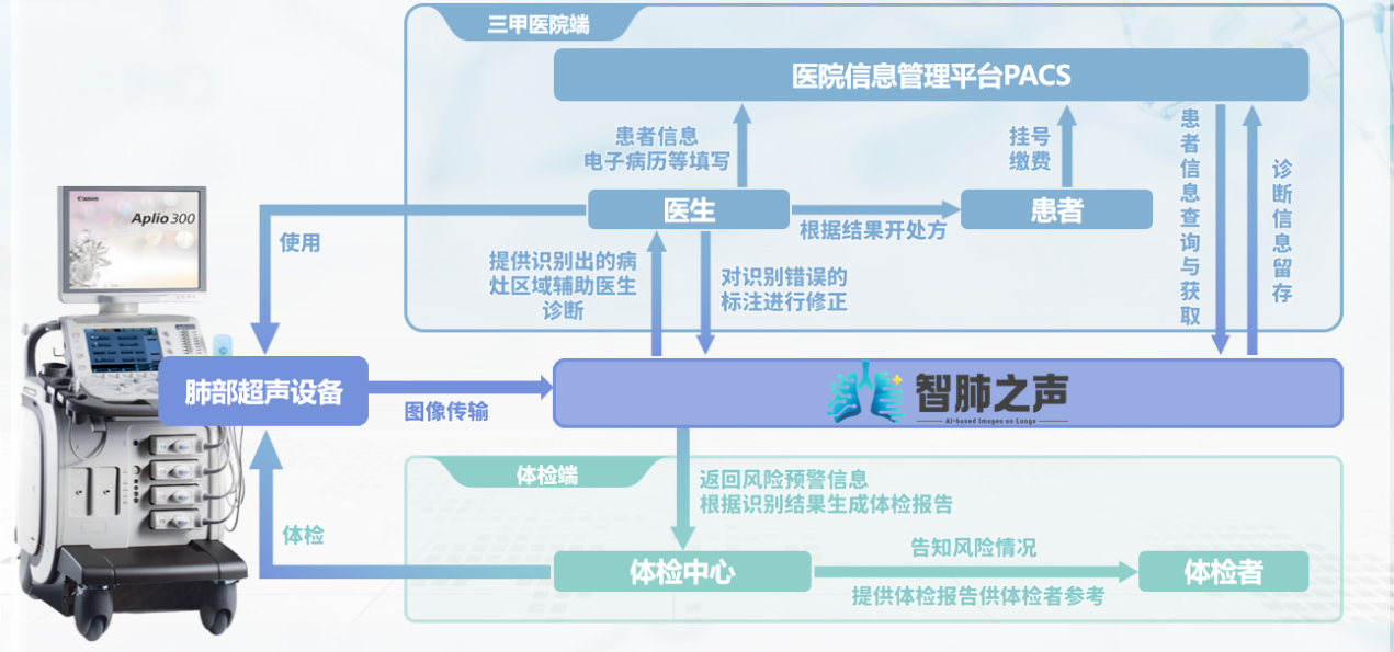 项目简介:为响应健康中国2030,项目团队与安贞医院开展横向课题,基于医院脱敏肺超数据集,训练多模志图像分割大模型,AIGC体检报告自生成模型,并将其融入云平台,推出"智肺之声"系列产品-肺部健康监测系统和病灶智能识别系统。项目借助超声设备便携优势,辅助三甲医院进行病情诊断,助力体检中心高效完成肺病筛查。“智肺之声"以多模态人工智能攀能智慧医疗,提高慢阻肺检测普及率、准确率和便捷性,为国民肺部健康保驾护航!
