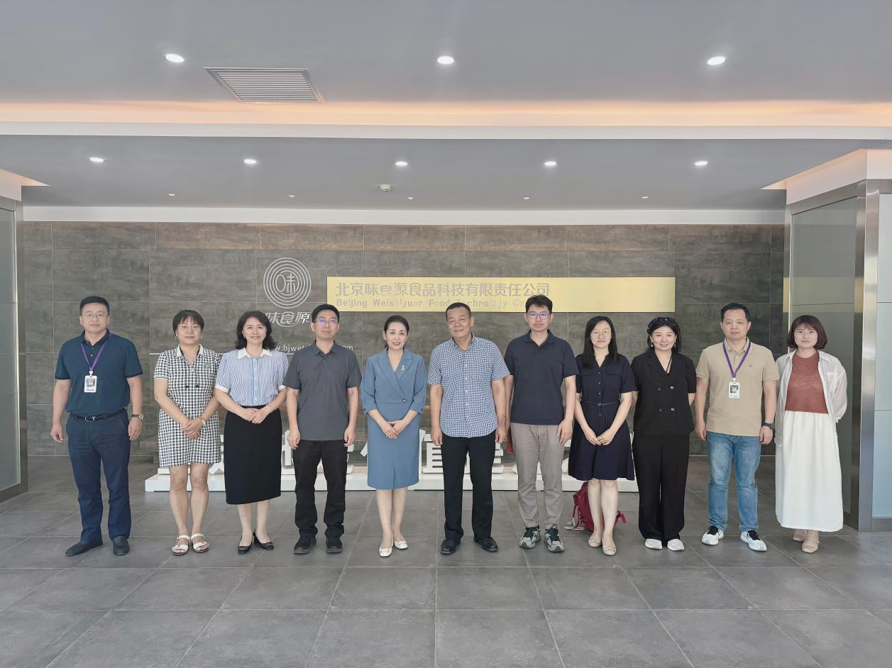 刘滨董事长对母校老师的到来表示热烈欢迎,介绍了在校就读的经历和毕业后创业的初衷,感恩在母校的学习培养了扎实的专业功底,介绍了味食源科技有限公司的发展成绩。公司总经理徐德成详细介绍了公司的生产理念和发展状况。该公司成立于2008年,是一家专业从事食品配料研发、生产、销售的国家高新技术企业。公司于2014年与孙宝国院士团队共同组建了院士工作站,本着“味料同源, 科技缔造美味”的理念,不断创新,在肉制品、预制菜、调味品、方便食品、休闲食品等方面应用广泛。2023年公司荣获“北京市数字化车间”荣誉称号,公司先后取得了多项发明专利,获得国家科学技术进步二等奖和教育部科学技术进步一等奖、中国轻工业香精行业十强企业、专精特新中小企业等重要奖项。同时,与北工商开展了长期合作,不断推动食品配料行业的健康发展,逐渐将味食源打造成为专业型、创新型的公司,为传播中华美食贡献力量。