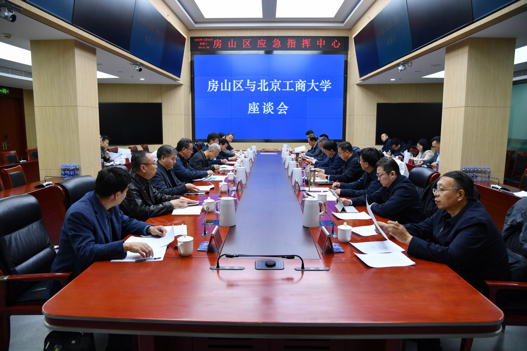 12月4日,学校党委书记沈千帆,党委副书记、校长郭建华带队赴房山区,就深化校地合作、助力属地经济社会发展与房山区领导座谈。房山区委书记阳波,区委常委、常务副区长张明智,区委常委、区委政法委书记、区委办主任李进伟,区政府副区长张奇;学校党委常委、副校长郑文红、寇红江、邓祥征出席。房山区有关单位负责人、学校相关职能部门负责人参加。