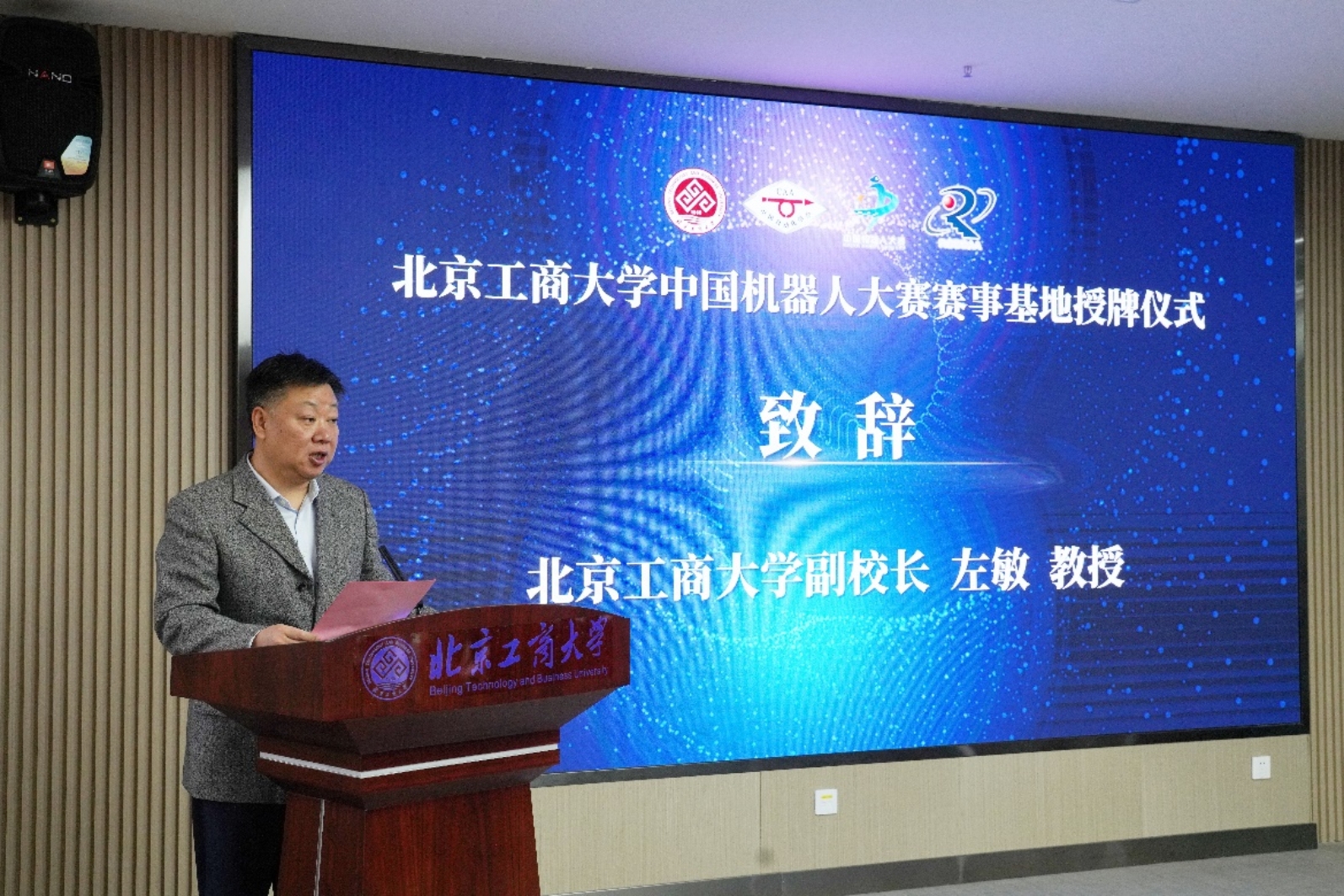左敏在致辞中感谢自动化学会各位专家长期以来对北京工商大学,特别是对我校实践教学和人工智能学院的关心、支持、帮助!赛事基地的获批为我校实践教学、学科竞赛与科学研究的有机融合以及提高人才培养质量,激发学科发展动力,提升学科建设水平带来了新的机遇,为我校高水平研究型大学建设贡献了力量。