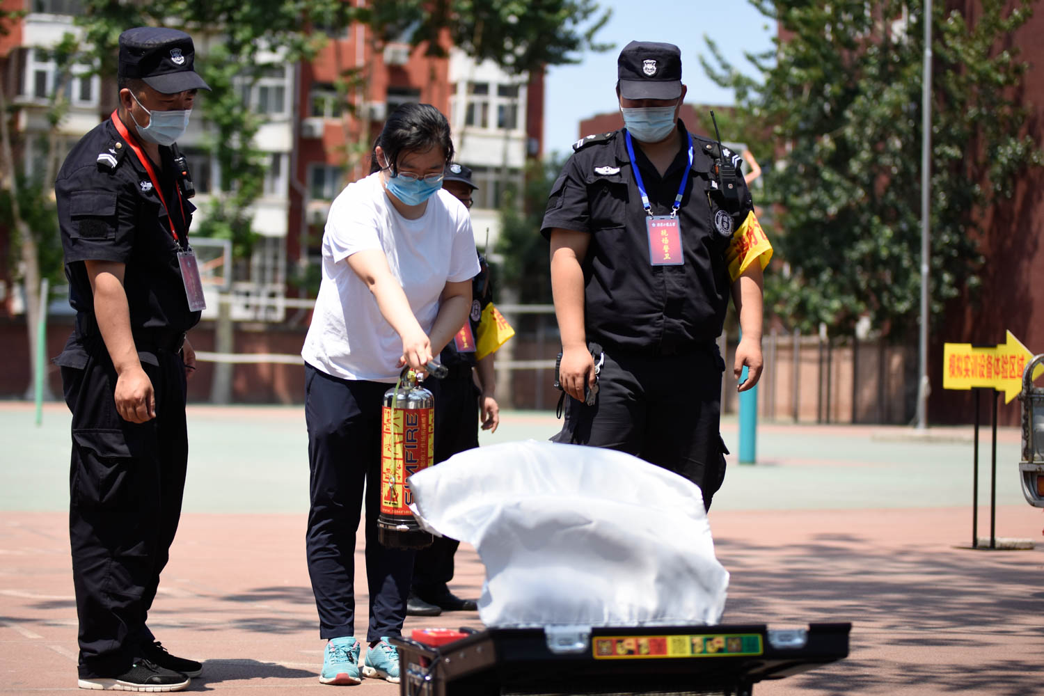 演习最后,同学们参加了“模拟灭火实训”和“逃生疏散帐篷”体验。