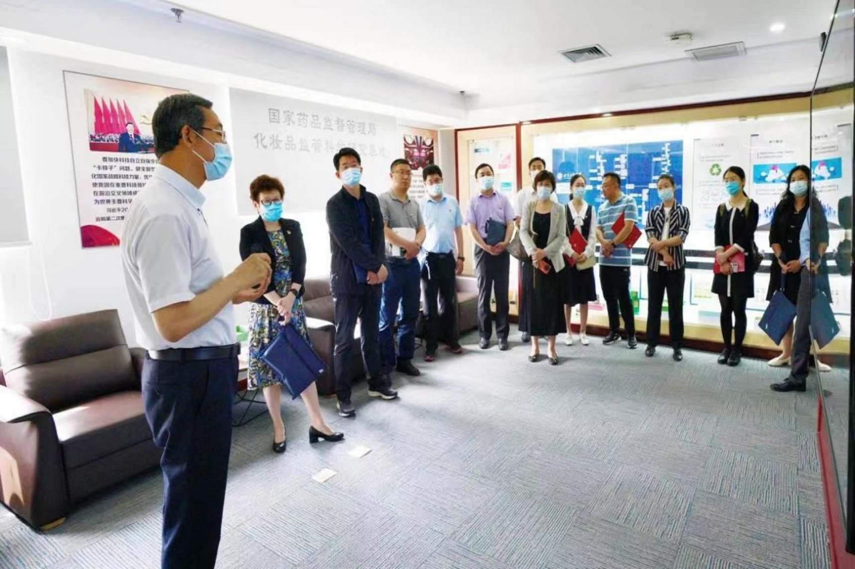 办公厅党员干部先后前往学校化妆品监管科学研究基地和数字未来中心参观学习。随后,联合召开了主题教育联学活动学习交流会,办公厅第二党支部书记、保密与档案处处长蔡明才主持会议。学习交流会上,先由学校马克思主义学院于强教授作了“台海问题与海峡两岸”主题宣讲,办公厅新闻处副处长、二级调研员钟贤坤和学校经济学院党委书记吕素香作为党员代表,分别结合自身岗位职责和主题教育学习体会交流发言。办公厅副主任苏大林结合工作谈了对“两个确立”蕴含的理论逻辑、历史逻辑和现实逻辑的学习认识,表示要深刻领会党的二十大关于教育战略部署的极端重要性和现实紧迫性,努力把开展主题教育的过程变成敢担当、提能力、强作风的过程,转化为贯彻落实建设教育强国决策部署的具体行动。办公厅副主任张萍认为联学活动内容充实、富有成效,希望以联学活动为契机,进一步深化交流,共同推动高等教育事业高质量发展。党委书记黄先开表示,联学活动对我校进一步提高政治站位,牢记“国之大者”,推动学校主题教育走深走实具有重要意义。学校党委将坚持目标导向、问题导向、结果导向,进一步聚焦推动发展,做实调查研究,强化队伍建设,解决发展难题,有力推动高质量党建引领事业高质量发展。