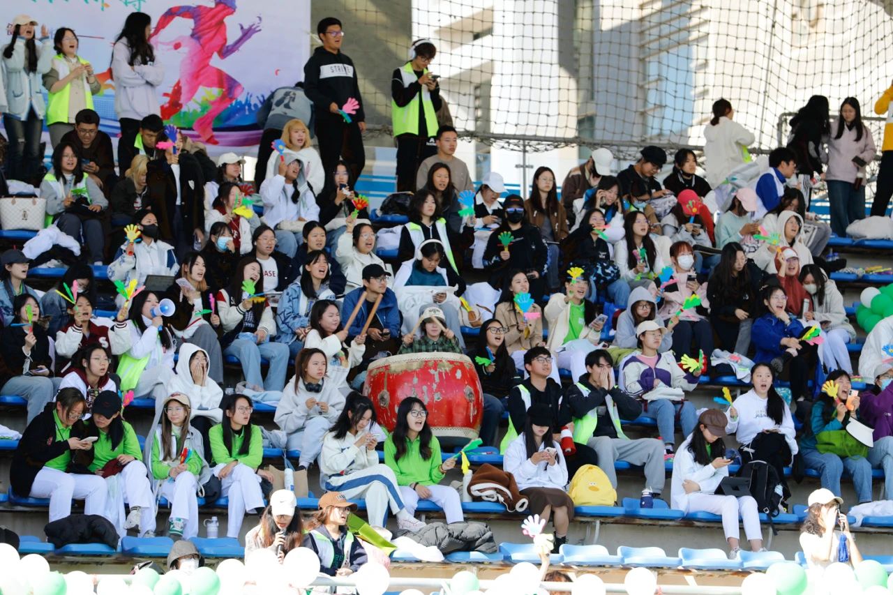 赛场上健儿们热血沸腾,看台上的观众也激情助威。彩旗飘飘,鼓声隆隆,欢呼喝彩让激情升温,让热爱迸发。