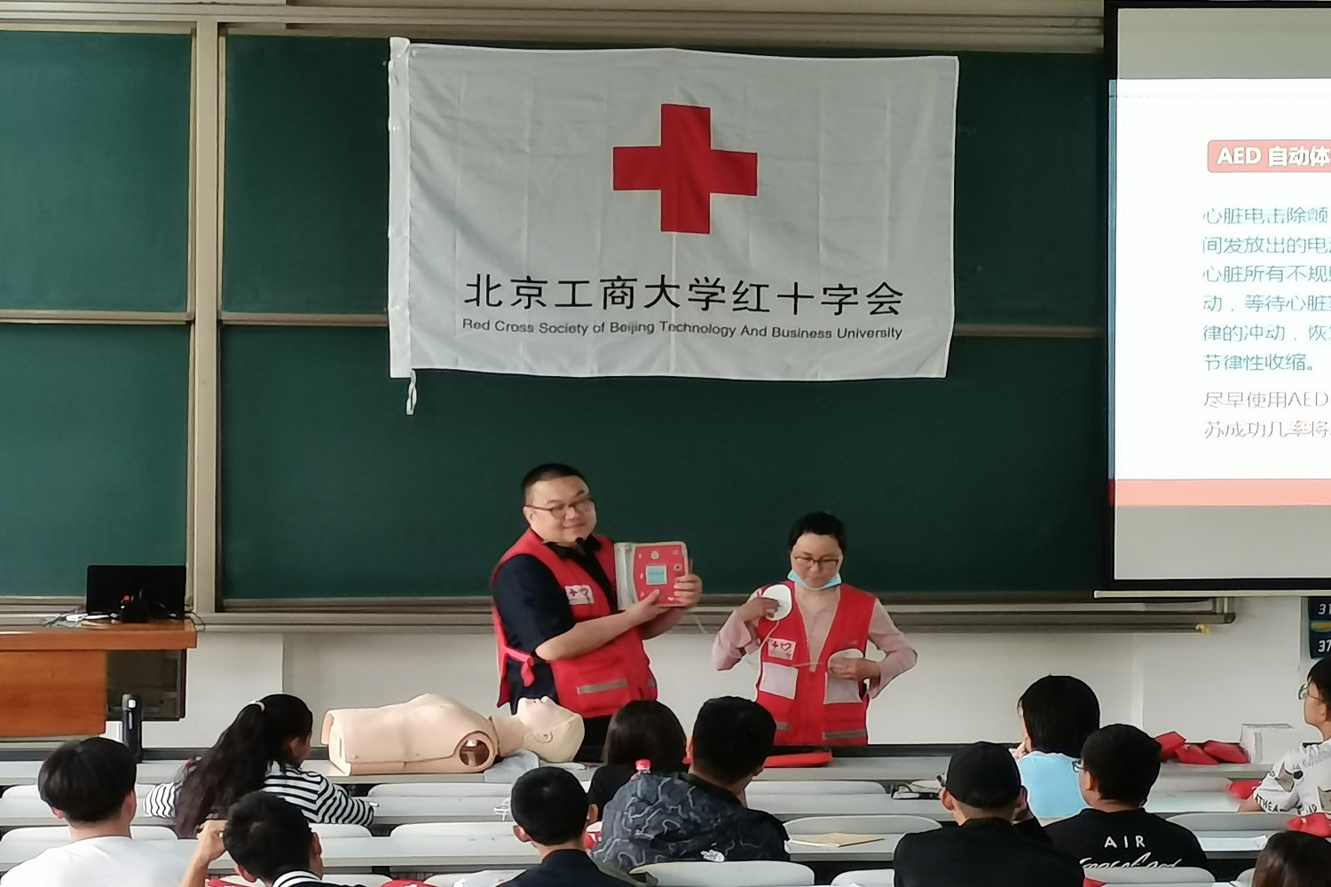 5月23日,北京工商大学红十字会学生分会在良乡主校区举办了大型学生急救培训。本次活动旨在为学生普及急救知识,掌握急救技能,切实提高应急救护能力。本次培训由理论教学和实操技能训练构成。我校红十字会学生分会骨干及2020级学生安全专员代表共计120人参与了本次培训。