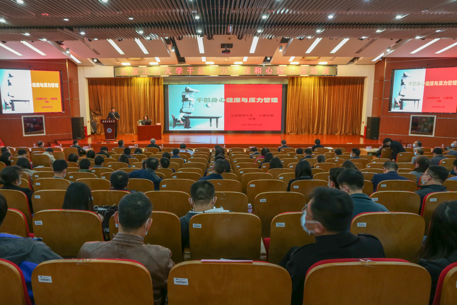 4月16日,学校在良乡主校区举办干部压力管理和心理调适培训。北京师范大学许燕教授受邀作题为“干部身心健康与压力管理”的专题讲座。全体中层干部参训。讲座由学校党委副书记王伟主持。