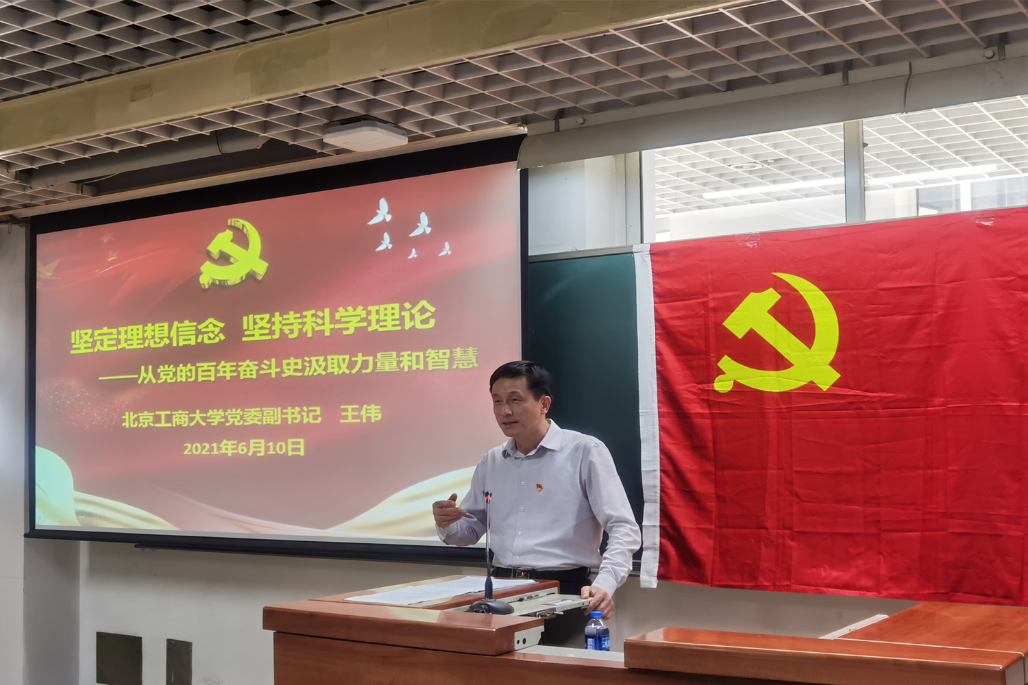 6月10日,学校党委副书记王伟以“坚定理想信念,坚持科学理论——从党的百年奋斗史中汲取力量和智慧”为主题讲授专题党课,计算机学院全体教职员工、学生党员参加党课学习。党课由学院党委书记蔡强主持。