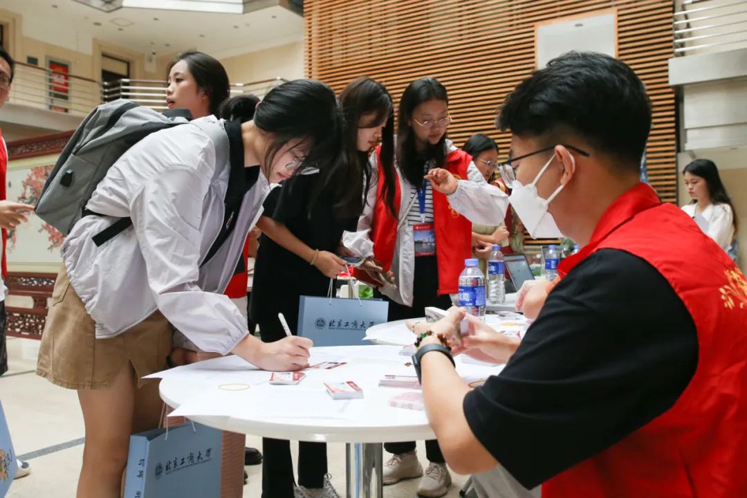 国际经管学院精心策划,暖心迎“新”。现场设置了家长等候区,家校互动交流,共育成长成才。醒目的学院吉祥物毛绒玩具小鲸、“奋进国经管,逐梦北工商”、“铸魂报家国,青春勇担当”手势牌等,引来新生纷纷打卡留念。