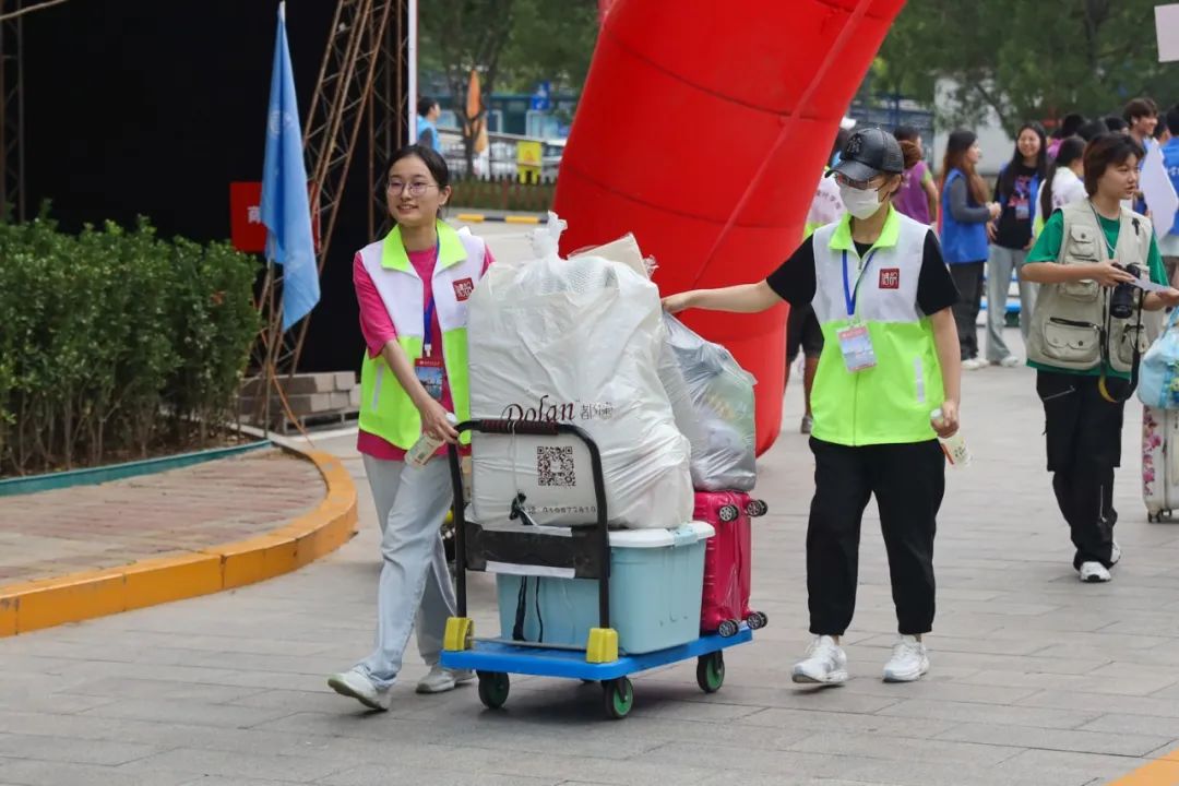 上午7时,热烈的红色拱门和飘扬的学院旗帜在初升的太阳下格外耀眼。“同学,请来这边!”迎新志愿者们亲切的问候,是初来乍到的萌新们收到的第一份温暖。身穿彩色马甲的他们,由校门至寝室,从超市到食堂,用忙碌的身影“铺”出了一道绚丽的路线。穿梭于人群之中,志愿者们为新生答疑指路,搬运行李。签到确认,领取资料,一切都高效而有序地进行着。
