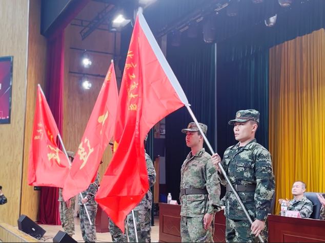 吕良为军训营授营旗。